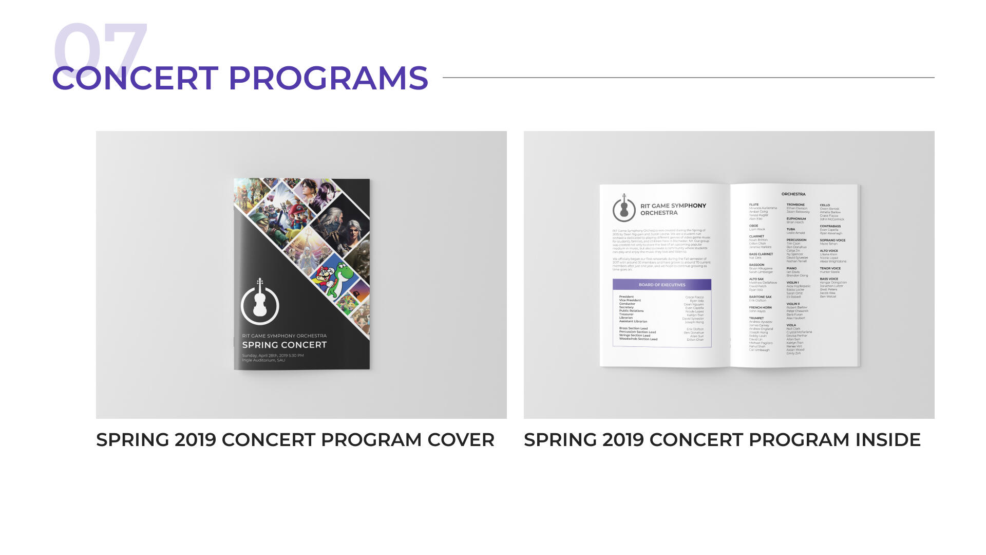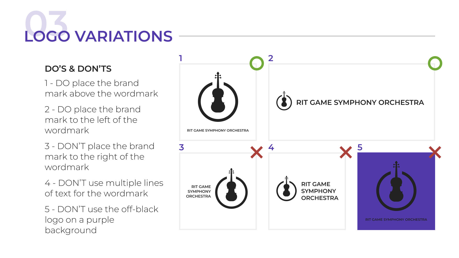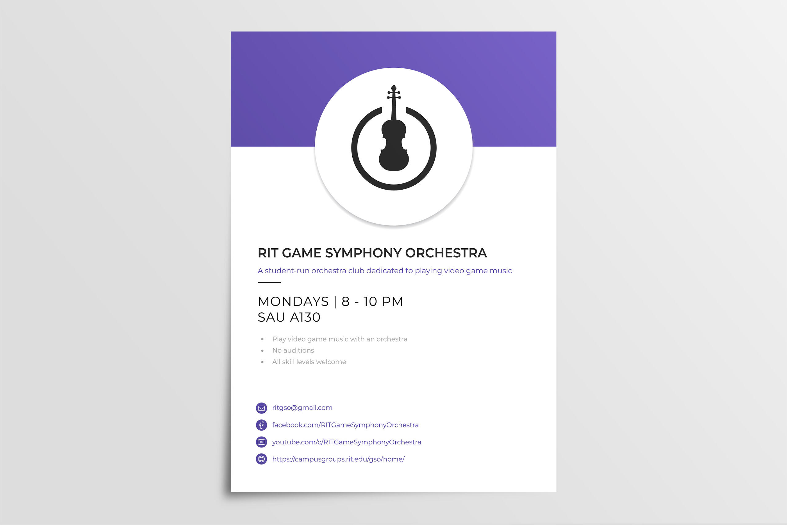 Design a logo and create brand guidelines for Rochester Institute of Technology's student-run Game Symphony Orchestra club in addition to creating promotional materials to market the club to potential members and the public.