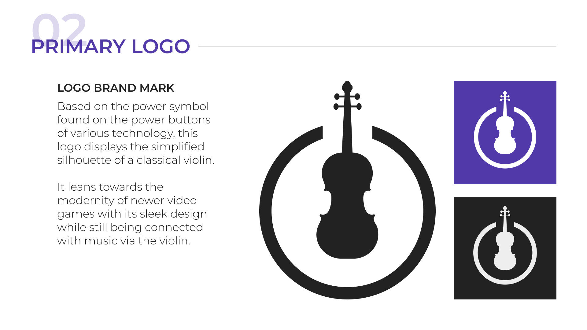After showing my first couple of iterations that were met with mixed reception, I pursued new inspiration, which I eventually found in the form of the power button symbol. In the end, I integrated the power button symbol with the silhouette of a violin, and after a couple of final tweaks, the new logo design I created was officially approved.